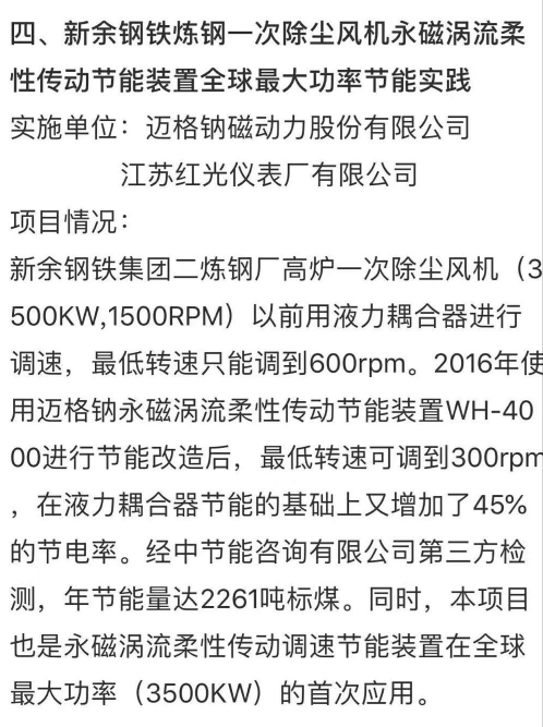 近日,我公司“一次除尘风机永磁涡流柔性传动节能装置”技术,获得由国际能效合作伙伴关系组织(IPEEC)发起的“最佳节能技术和最佳节能实践”评选和推广项目,并在国家发改委网站予以公示。